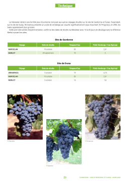 Cette première année d’expérimentation, confirme des dates de récolte du Marselan avec 10 à 20 jours de décalage avec la référence Merlot suivant les sites.